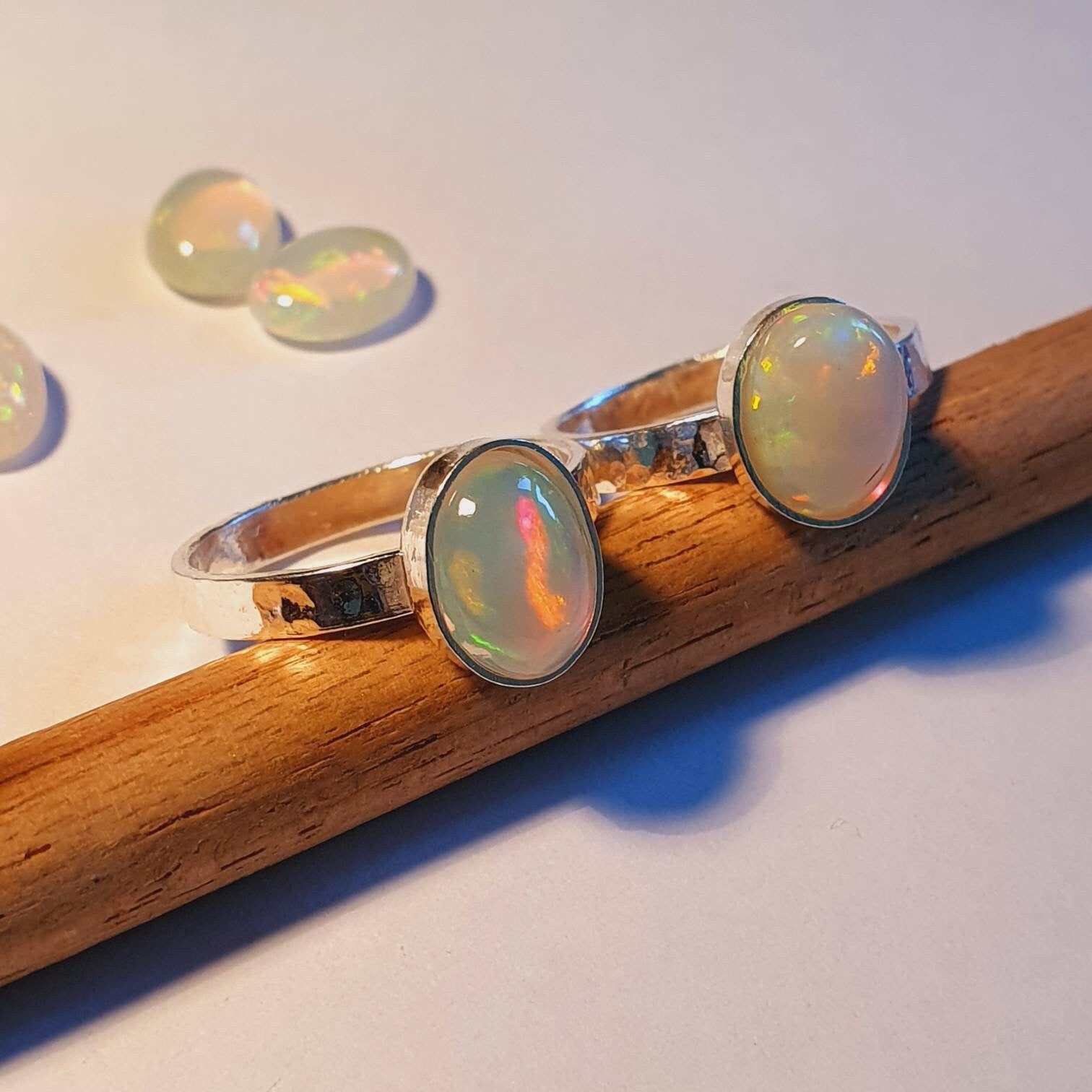 Beautiful handmade Ethiopian opal ring crafted in high-quality 925 sterling silver. Each stone is genuine and natural, showcasing the stunning play of colours that opals are loved for. Trilingual making the wearer shine.