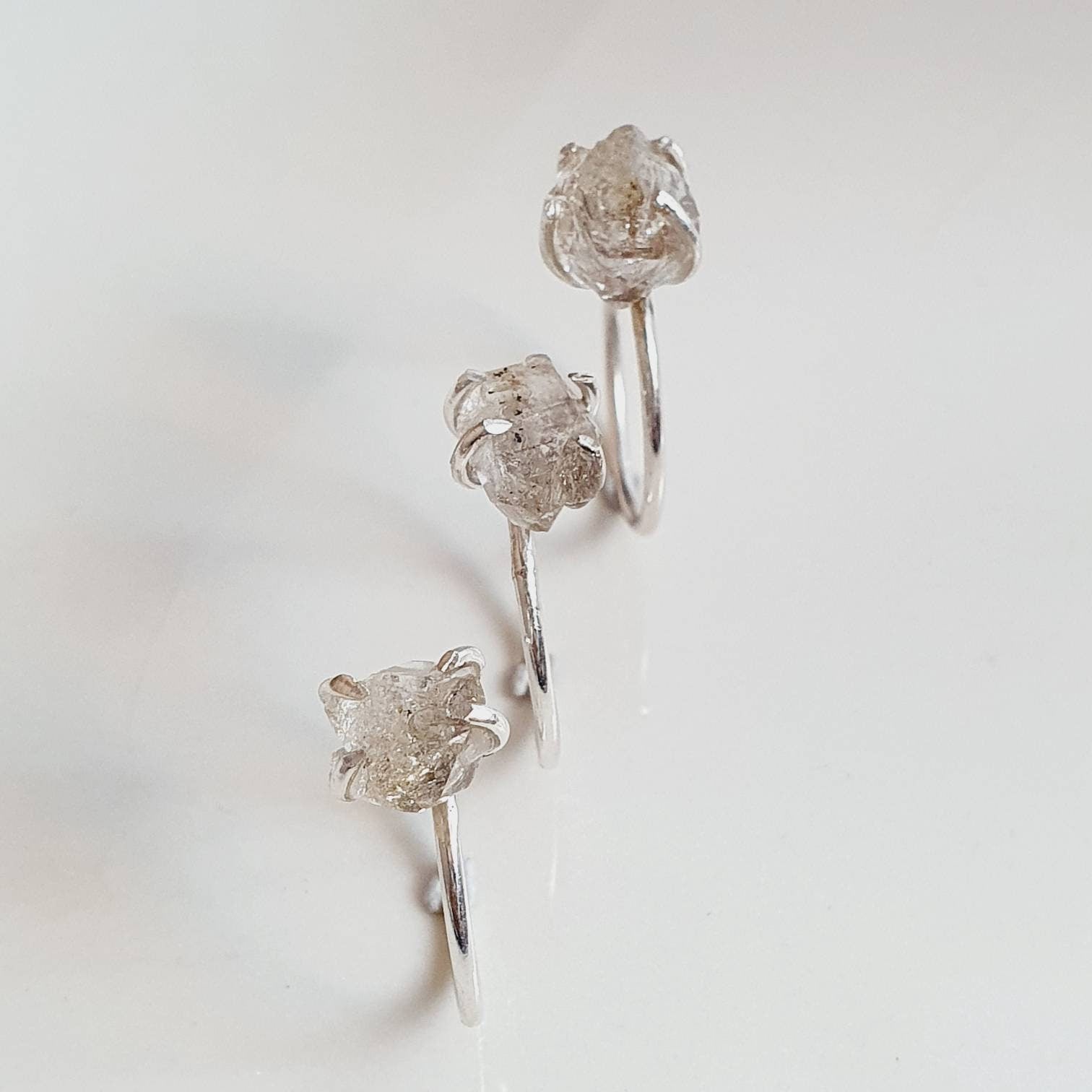 Herkimer Diamond Quartz Ring 925 Sterling Silver | Raw Crystal Gemstone Ring | Handmade Silver Jewellery