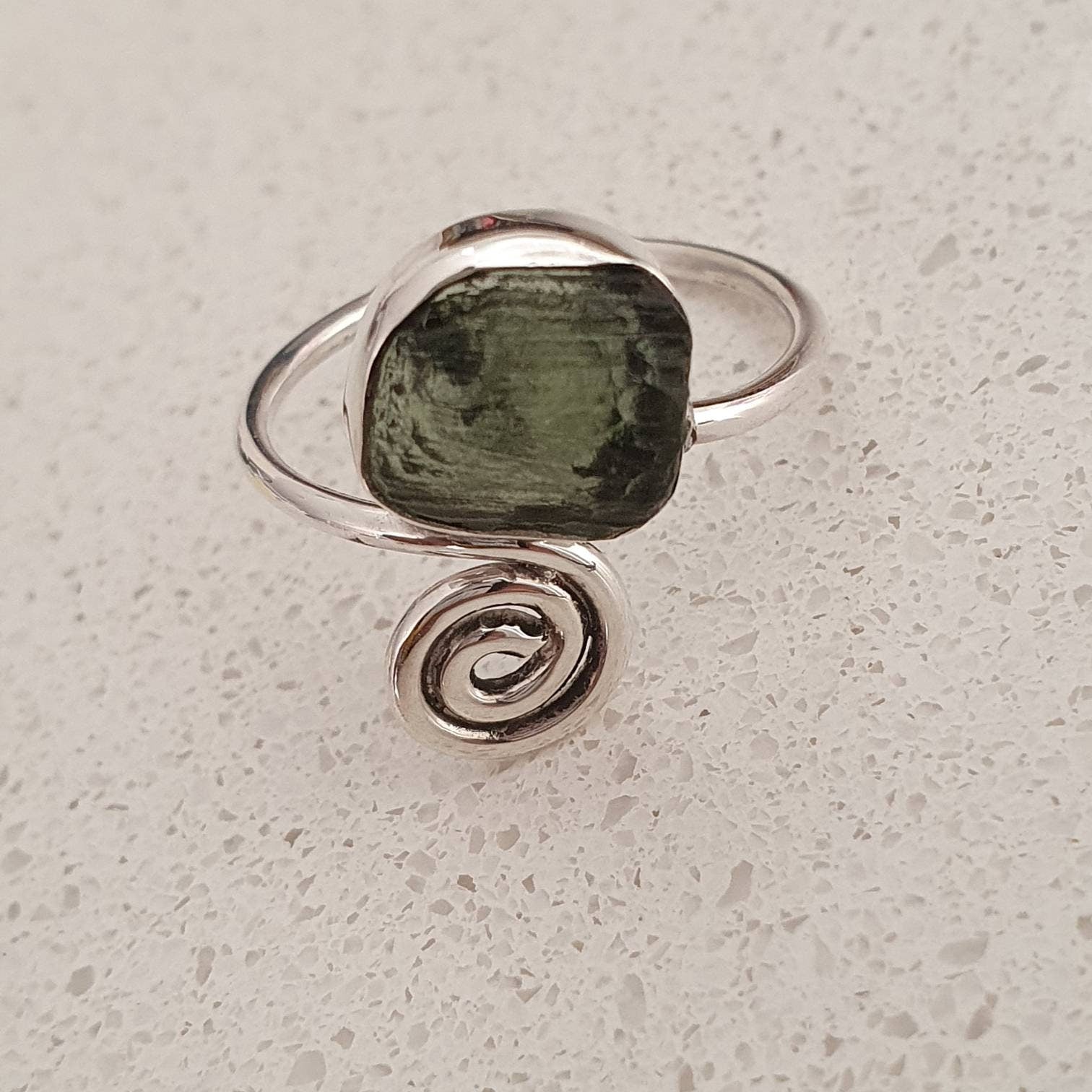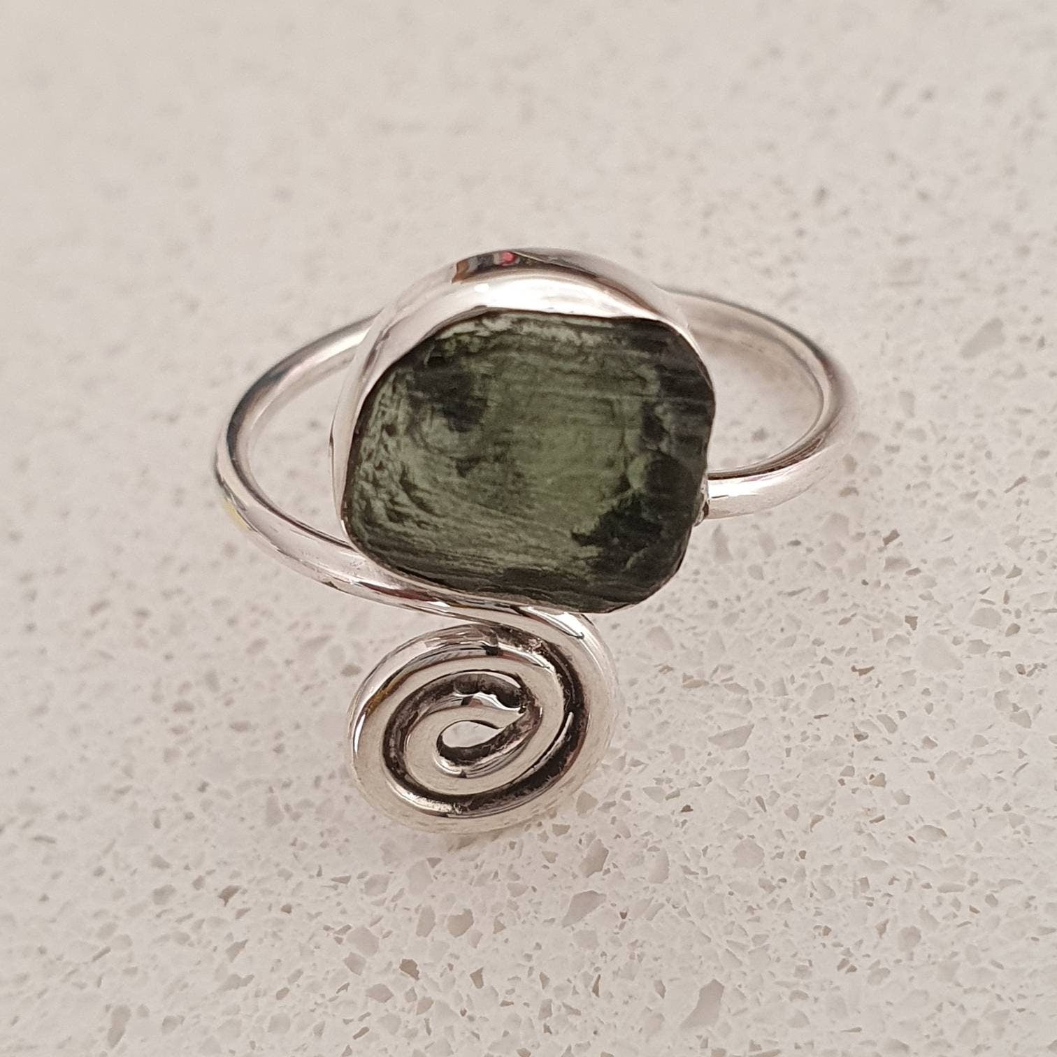 Discover the mystical beauty and powerful energy of our genuine Moldavite rings, handcrafted in australian 925 sterling silver. Each piece features authentic rough Moldavite, making every ring unique.