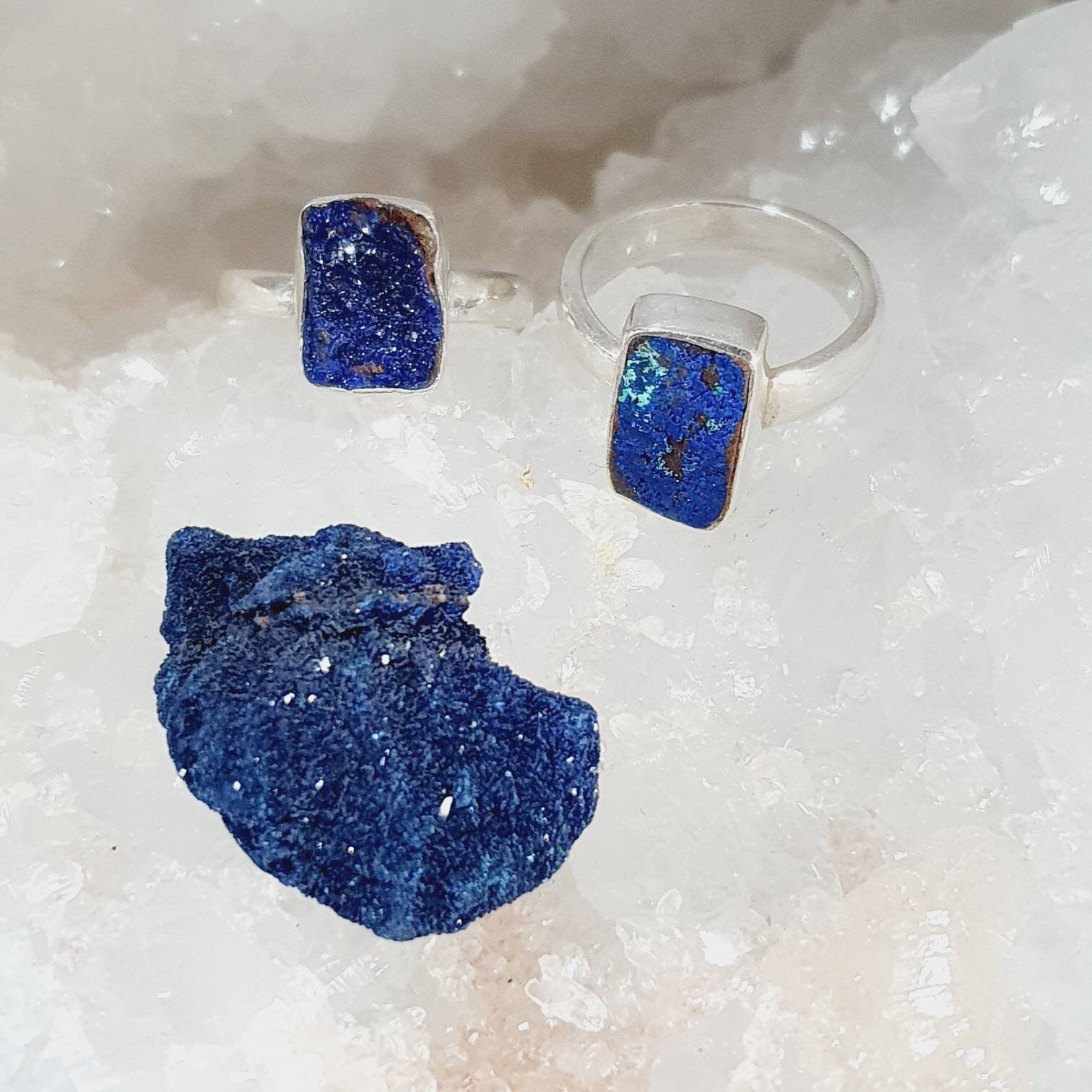 Raw Azurite Ring 925 Sterling Silver | Handmade Natural Azurite Gemstone Ring | Personalised Options
