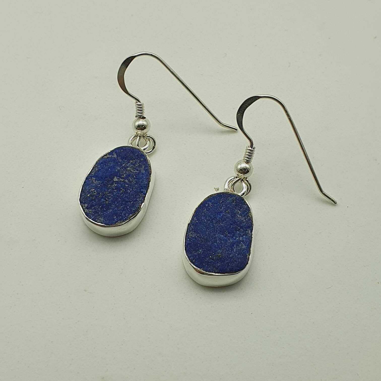 Elevate your style with these handcrafted raw lapis lazuli earrings, set in genuine 925 sterling silver. Each pair features natural lapis lazuli gemstones, celebrated for their deep celestial blue and timeless charm.